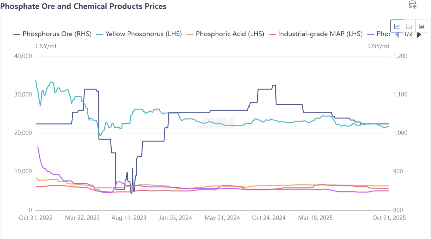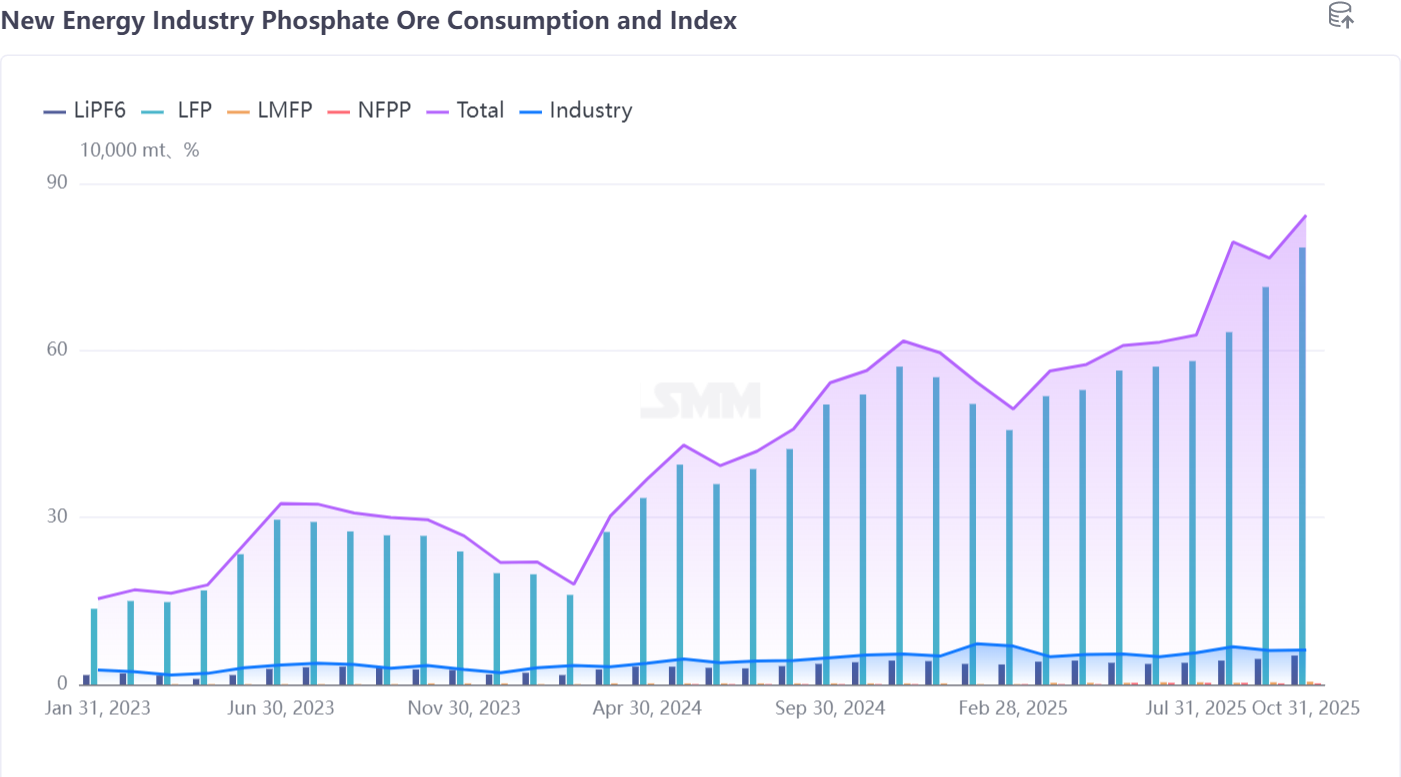 Highlights: In October 2025, the phosphorus chemical industry operated against a backdrop of subdued traditional agricultural demand and robust new energy demand. The industry-wide production of phosphate ore (converted to 30% P₂O₅ equivalent) climbed to a record high of approximately 14 million mt, while the consumption index for the new energy sector rose to 6.2, with strong demand for products like LFP being the primary driver.