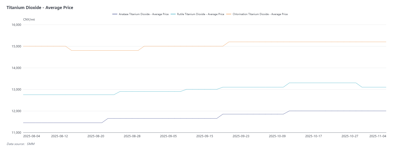 Titanium dioxide prices showed a trend of rising initially then falling from high levels in October. At the beginning of the month, influenced by the concentrated release of September orders, some companies successively issued price adjustment letters to push prices higher. However, actual market transactions were still mainly focused on executing previous orders, with new orders being sporadic spot transactions. By mid-to-late October, domestic demand gradually weakened, market inquiries were light, and the signing prices of some companies fell back to the low range of September. The overall upward trend failed to continue effectively. Currently, both upstream and downstream players in the industrial chain have generally entered a wait-and-see mode, with trading activity significantly declining. Against the backdrop of limited external demand support and persistently weak domestic demand, market expectations are bearish, and it is anticipated that titanium dioxide quotations may face further downward adjustments in November.
