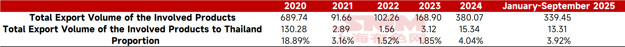 This time, Thailand initiated an anti-circumvention investigation against the involved products from China. According to data from the General Administration of Customs, the total volume of China's involved products exported to Thailand in the first nine months of 2025 was 153,400 mt, accounting for 3.92% of China's total exports of the involved products, indicating a relatively limited overall impact. In an extreme scenario, this could lead to a decrease of 153,400 mt in China's total exports in 2026.