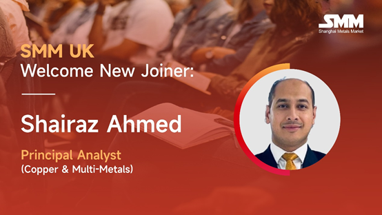On November 10, SMM officially announced the appointment of Shairaz Ahmed as a Principal Analyst (Copper & Multi-Metals) at SMM Global UK Ltd.