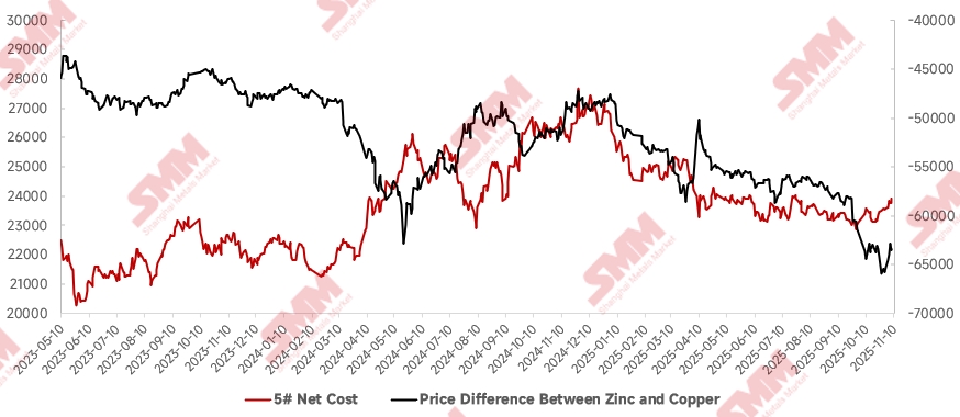 Furthermore, from the zinc-copper price spread perspective, copper prices surged to a decade high this year, causing the zinc-copper price spread to widen sharply. This has resulted in more significant cost pressure for Zamak 5, which has a higher copper content. The net profit margin for enterprise production has narrowed from around 400 yuan/mt at the beginning of the year to less than 100 yuan/mt currently.