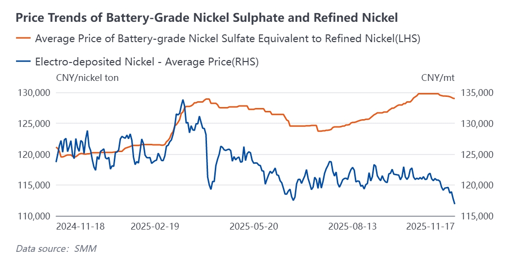 On November 10, Government Regulation No. 28/2025 (PP 28/2025) came into effect, with the Indonesian government restricting new investments in nickel smelters through "Industrial Business Permits" (IUI) to address global oversupply. Meanwhile, the Indonesian Ministry of Energy and Mineral Resources announced plans to reduce the 2026 nickel ore quota RKAB, which will be lower than the 319 million tons in 2025. However, this had limited short-term supply disruption, and market sentiment reacted minimally.