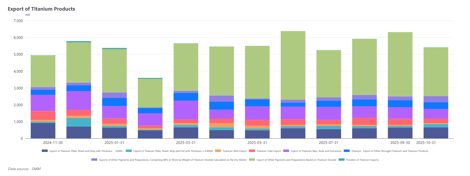 During the same period, titanium material exports also showed a certain degree of contraction, with the cumulative export volume being approximately 5,400 tonnes, overall declining compared to the previous period. This indicates that current international titanium market demand is generally weak, with a slowdown in procurement pace. Besides the macro-environmental impact, this phenomenon may also be related to the early release of some orders in the third quarter, which to some extent pulled forward subsequent demand.