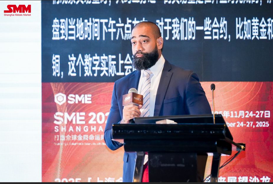 In his presentation, Shairaz Ahmed deeply integrated SMM's unique data and exclusive indices, leveraging SMM's entire industry chain product matrix to analyze the operational logic and future trends of the copper market from multiple dimensions and a panoramic perspective. Specifically, the analysis comprehensively covered key sections such as core market indicators, macroeconomic environment, supply-demand pattern, market balance, and price forecasts. Market perspective focused on key price influencing factors including copper price trends, LME copper price spreads, copper inventories, and the US dollar index. Macro perspective incorporated an overview of macroeconomic factors such as PMI trends in multiple countries worldwide and the IMF's projected GDP growth rates. Demand side, the global refined copper demand forecast was highlighted. Supply side, an in-depth analysis was provided on the global copper concentrate market balance and the operating rates of Chinese smelters. Finally, conclusions on market balance and price outlook were presented, centered on the global refined copper market balance, LME copper price trends, and alternative price scenarios.