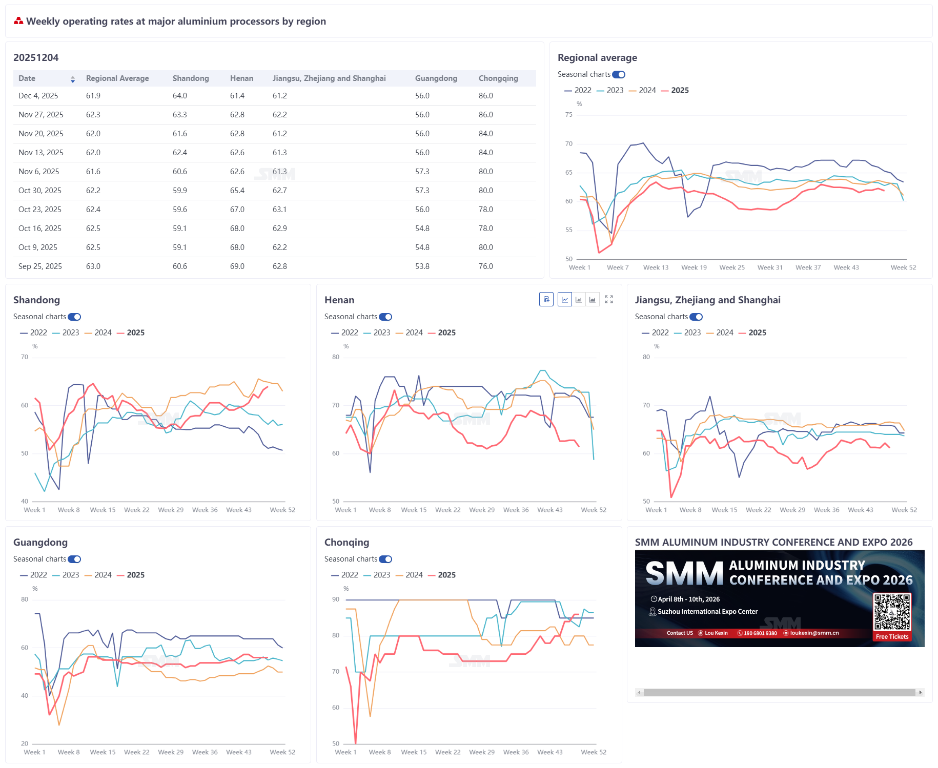 Home / Metal News / Year-end consumption weakened coupled with high aluminum price suppression, the operating rate of aluminum processors came under pressure and pulled back to 61.9% ——SMM Aluminum Processing Weekly Survey