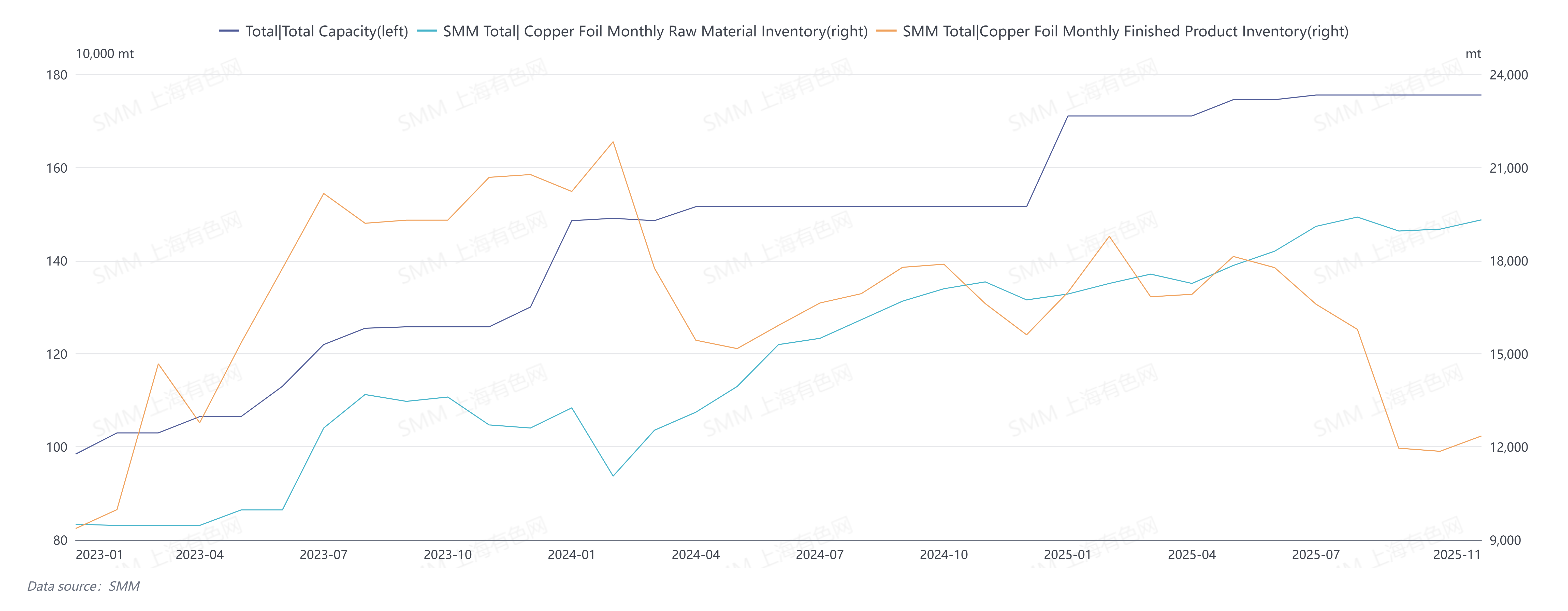 SMM expects the operating rate of Chinese copper foil enterprises to continue its upward trend in December, concluding 2025 with a strong performance. For lithium battery copper foil, the power sector continues its traditional year-end push while demand is also supported by next year's purchase tax policy impact. In the ESS sector, the pace of the export rush in overseas markets has become more rational as tariff policies clarify, but overseas orders accumulated in H2 still provide a foundation for Q4 demand. For electronic circuit copper foil, orders are expected to remain generally stable, with emerging high-end industries maintaining strong performance and pre-holiday stockpiling demand existing in overseas markets. Overall, supported by end-use demand, the copper foil industry is expected to remain in a high prosperity range.