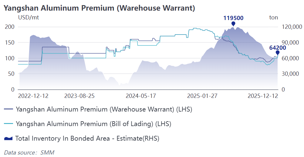 The spot market has already anticipated the upward trend in advance: the SMM Japan MJP spot premium has risen to $130/mt, up 85% from the low at the end of October. At Port Klang, Malaysia, a key transshipment hub for aluminum ingots in Asia, the FCA transaction price range reached $130-135/mt. From a trade logic perspective, the $130/mt FCA price at Port Klang, plus $20/mt FOB charges and $12/mt shipping costs, corresponds to approximately $162/mt in major Asian regions, significantly higher than the Q4 2025 settlement price, providing a direct reference for the rebound in Q1 2026 premiums. (However, in practice, due to different final cargo flows, the FCA transaction premium in Malaysia serves only as a directional guide under profit orientation.)