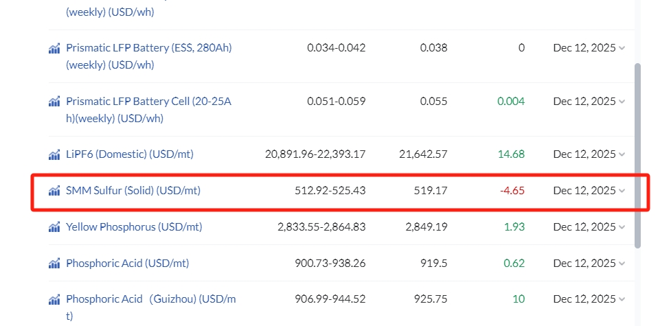 As an authoritative information institution long dedicated to the non-ferrous metals and new energy materials sectors, SMM, after a period of consolidation and market surveys, plans to introduce new sulphur price points starting December 12, aiming to provide the market with more precise pricing anchors and price references. The specific new price points are as follows: