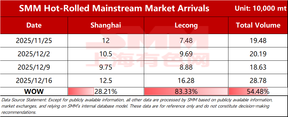 Shanghai Market: Shipments in the Shanghai market increased slightly WoW. Specifically, shipments from Northeast and East China resources remained flat, while those from North China decreased slightly, and shipments from mainstream South China resources increased significantly. Looking ahead, recent hot-rolled coil prices have moved sideways, with weak market transactions amid the off-season. Merchants' ordering enthusiasm is moderate, and arrivals in the Shanghai market are expected to fluctuate at a medium level in the short term.