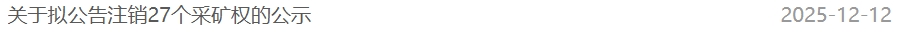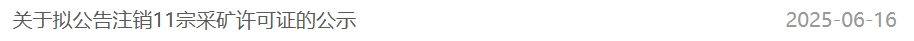 (Note: In the announcement, the terms "mining right" and "mining license" refer to essentially the same thing, with the former being a more detailed expression in the official notice.)
