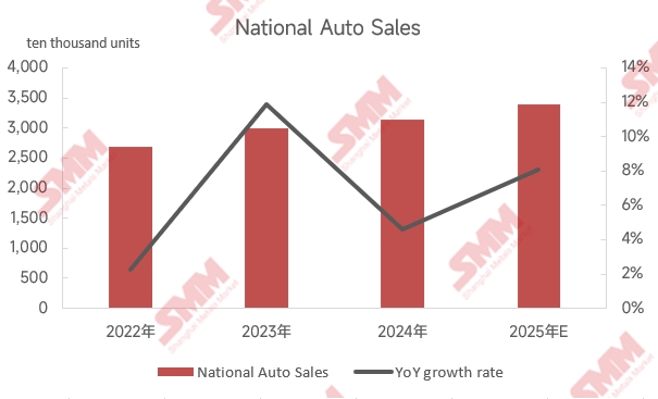 First, from the opportunity perspective, the consumption of rubber-grade zinc oxide is heavily concentrated in the tire sector. China's auto sales have shown remarkable performance over the past three years, increasing from 30.04 million units in 2023 to 31.43 million units in 2024, up 4.63% YoY. Domestic auto sales are projected to reach 33.97 million units in 2025, with an estimated YoY growth of around 8.08%. Although some regions phased out or adjusted the "trade-in" subsidies ahead of schedule by the end of 2025, the automotive market is still expected to present certain opportunities in 2026. In September this year, China released the "Automotive Industry Growth Stabilization Work Plan (2025–2026)," which explicitly states that the industry will maintain stable and positive development trends in 2026. Additionally, the plan outlines detailed measures such as the NEV promotion campaign in rural areas and pilot projects to improve charging and battery swapping infrastructure in county-level regions. These initiatives are expected to continue supporting the auto market, which will directly impact the overall production and sales of tires in China.