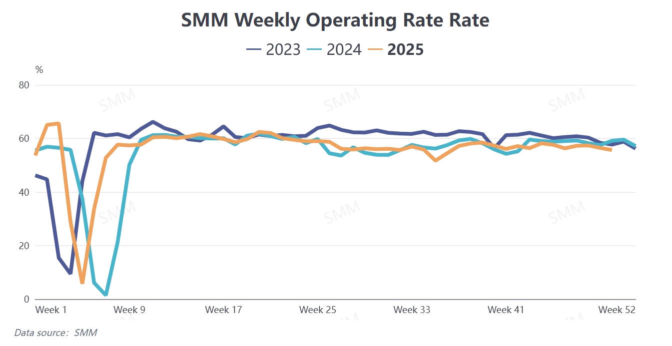 According to SMM communications and research, China's zinc oxide operating rate recorded 48.34% in November, up 0.18 percentage points MoM, but down 0.14 percentage points YoY. After entering December, based on the weekly operating rate, the zinc oxide operating rate has also continued to weaken. What are the reasons behind this? How will the zinc oxide market develop going forward?