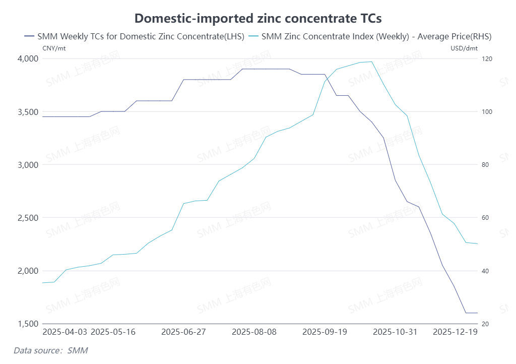 Entering December, although domestic smelter production cuts continued to widen amid declining TC rates both domestically and internationally, pre-priced imported zinc concentrates secured by smelters earlier continued to arrive. Additionally, tight domestic ore supply kept purchase willingness for imported zinc concentrates relatively strong among some ore-short smelters. Furthermore, the LME Cash-3M structure shifted into contango mid-month, reopening the Chinese zinc concentrate import arbitrage window after half a year, creating some conditions for spot order inflows of imported zinc concentrates. Considering these various factors, zinc concentrate imports in December are expected to remain above 400,000 mt.