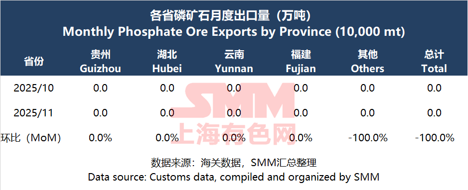 2. Phosphate Ore Export Situation: No exports in November.