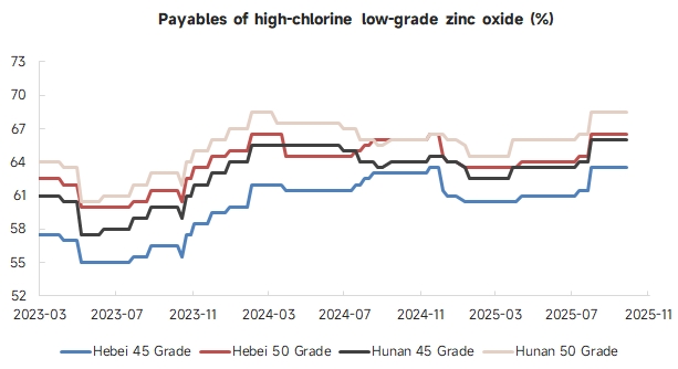 From the perspective of raw materials for secondary zinc, the primary sources are blast furnace gas ash and electric furnace dust from steel mills. Based on current operating conditions, due to the phase-out of outdated capacity and environmental protection-related controls in steel mills, operations are at a low level compared to the same period, leading to an overall tight supply of raw materials. Additionally, supported by strong consumption of zinc sulfate, prices for low-grade zinc oxide and zinc calcine remain high overall, increasing the raw material costs for secondary zinc.