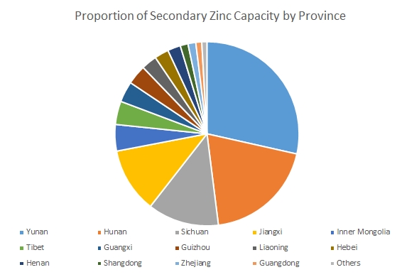 From the perspective of the secondary zinc market distribution, China's secondary zinc capacity is highly concentrated, primarily in regions such as Yunnan, Hunan, and Sichuan. These three provinces account for nearly 60% of the national capacity. However, as raw material issues have intensified in recent years, new secondary zinc capacity has been extending toward northern markets.