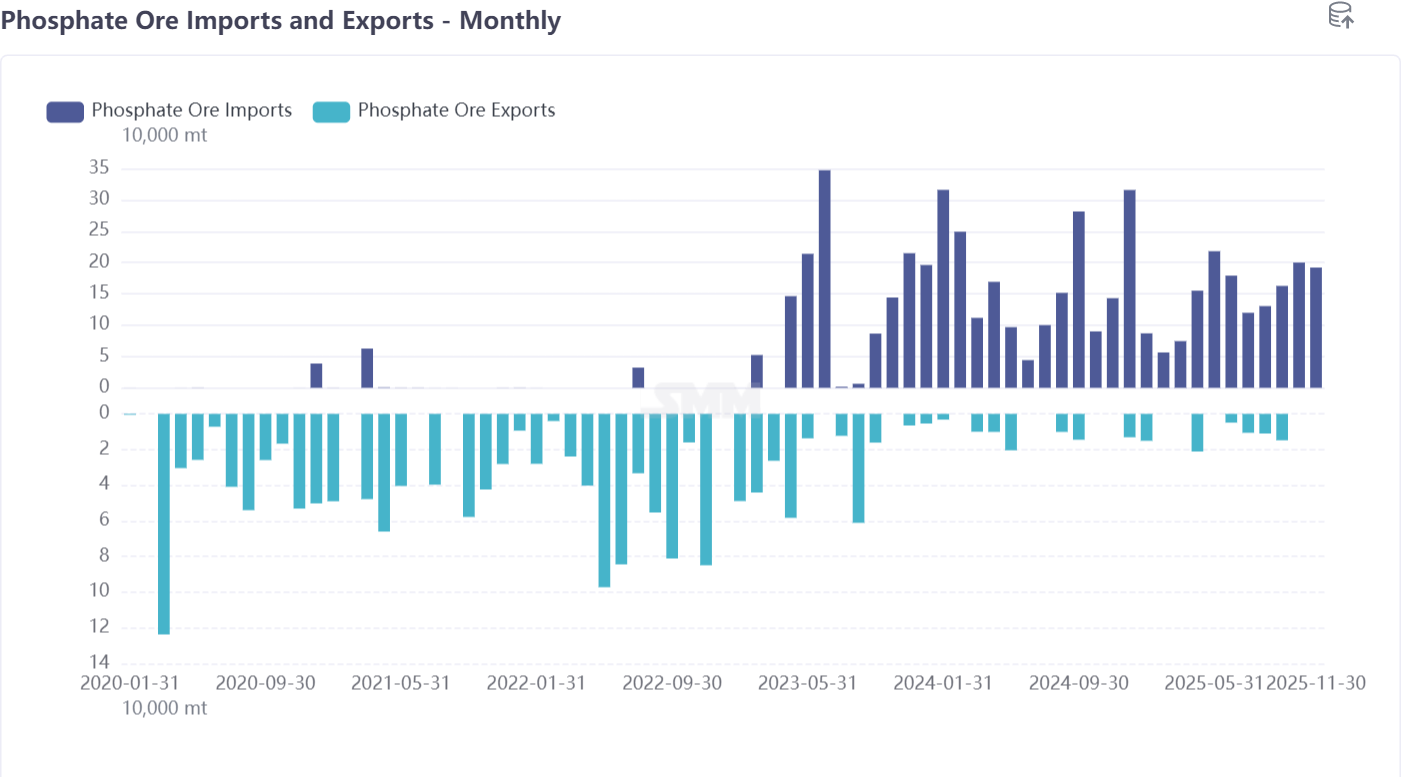 Sulfur prices rose unexpectedly, significantly increasing costs across the entire industry chain; phosphate ore imports continued to increase, with prices remaining high, and a slight pullback is expected in 2026;