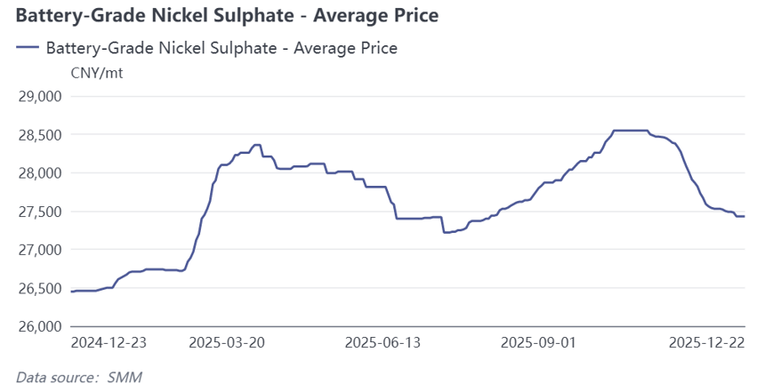 In Q1 2026, raw material side, intermediate product supply is expected to remain tight, and coefficients may be difficult to loosen. Demand side, Q1 is the off-season for the ternary market, coupled with the impact of Chinese New Year, ternary procurement demand is expected to pull back compared to Q4. Supply side, driven by weakening downstream demand, overall nickel salt supply is expected to decline, but some producers have new projects starting production in Q4 this year; if ramp-up occurs in Q1, it may provide incremental nickel salt available for external sale. Overall, if nickel prices perform weakly, nickel sulphate is expected to show a weak supply-demand pattern in Q1 next year, with relatively weak price trends, potentially strengthening after Chinese New Year resumption; if nickel prices strengthen, it may provide cost support for nickel sulphate selling prices.
