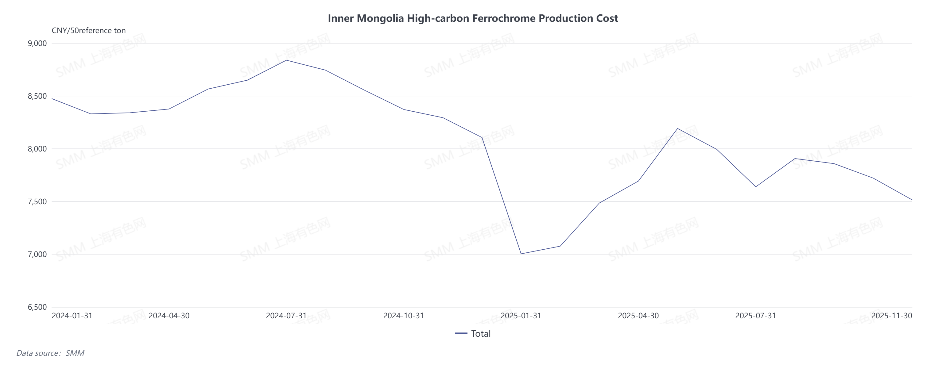 In 2025, the production cost of high-carbon ferrochrome in China exhibited distinct characteristics of initial rise followed by stabilization and regional differentiation, with a notable correlation to price fluctuations of chromite ore—the primary raw material—and a fluctuation range of 100 yuan per 50 basis tons.