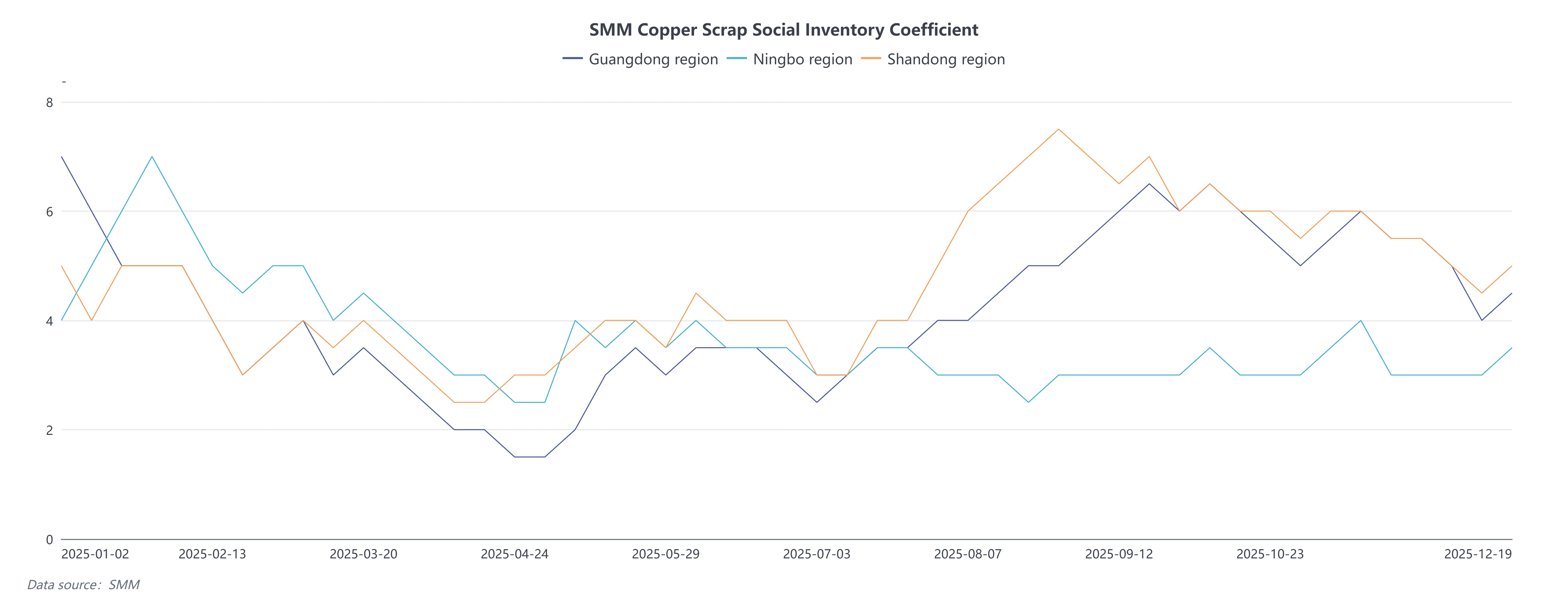 According to the SMM inventory coefficient of recycled copper raw materials in three regions, the inventory coefficient of recycled copper raw materials declined significantly in Q4. Even though copper prices continued to hit new highs, it was still difficult to increase the circulation of recycled copper raw materials. At the same time, when the selling price of anode plates was 500-1,000 yuan/mt higher than that of secondary copper rods, enterprises preferred to produce anode plates from recycled copper raw materials.