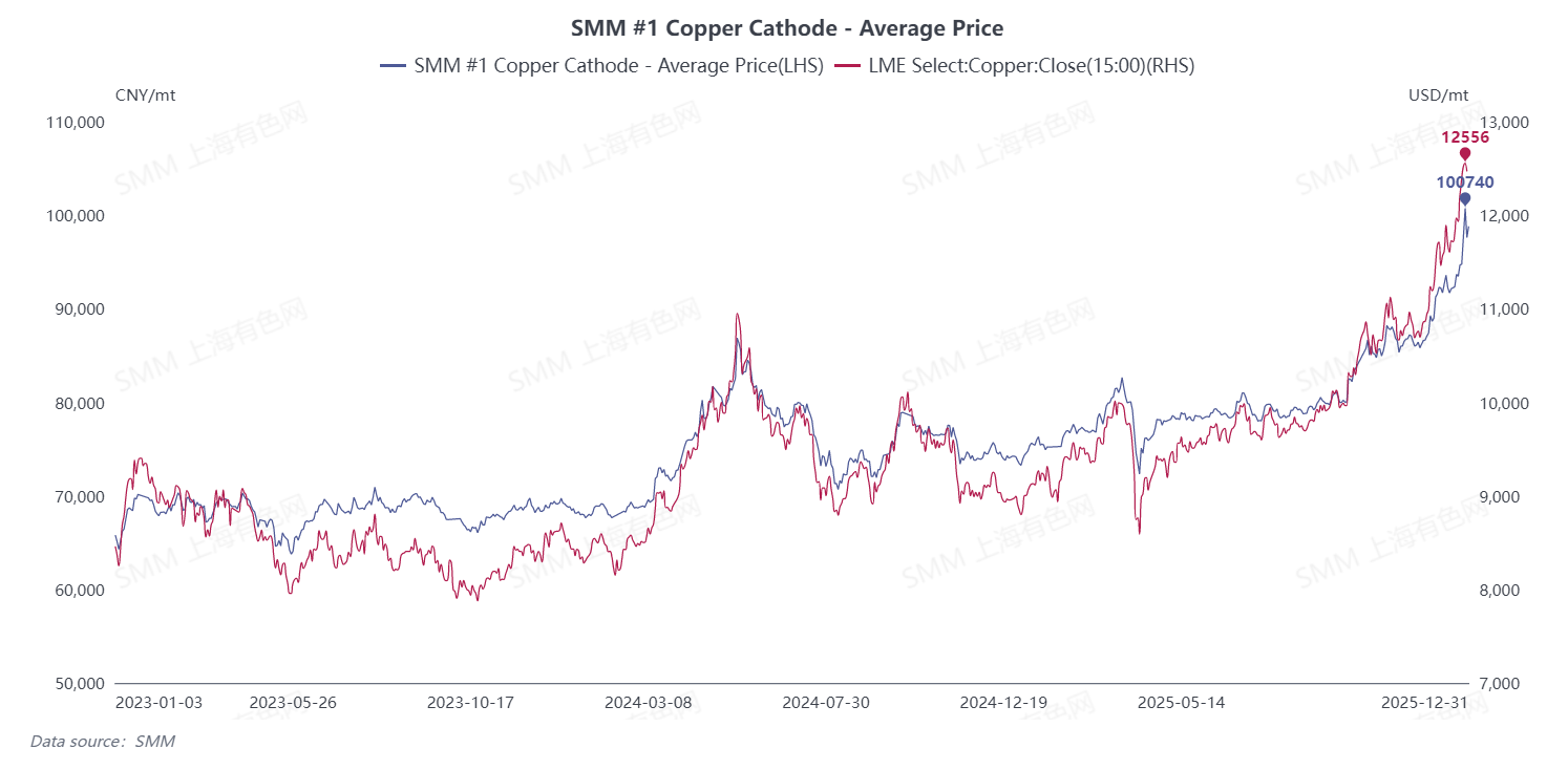 In December, overseas orders for copper pipe & tube weakened YoY, and combined with the impact of tariffs, overall industry orders performed poorly. Meanwhile, a significant rise in the center of copper prices further exacerbated weak demand. Enterprise orders declined noticeably, and the operating rate has fallen for three consecutive weeks, dropping to 67.26% in the latest week. Some enterprises, facing high finished product inventories, planned a three-day holiday during the New Year's Day period to digest inventories. The industry's operating rate is expected to decline further next week. Additionally, after copper prices broke through the 100,000 yuan/mt mark, the home appliance industry collectively promoted the use of aluminum as a substitute for copper to cope with cost pressure. Although large-scale substitution has not yet occurred, this trend has raised market concerns about copper demand.