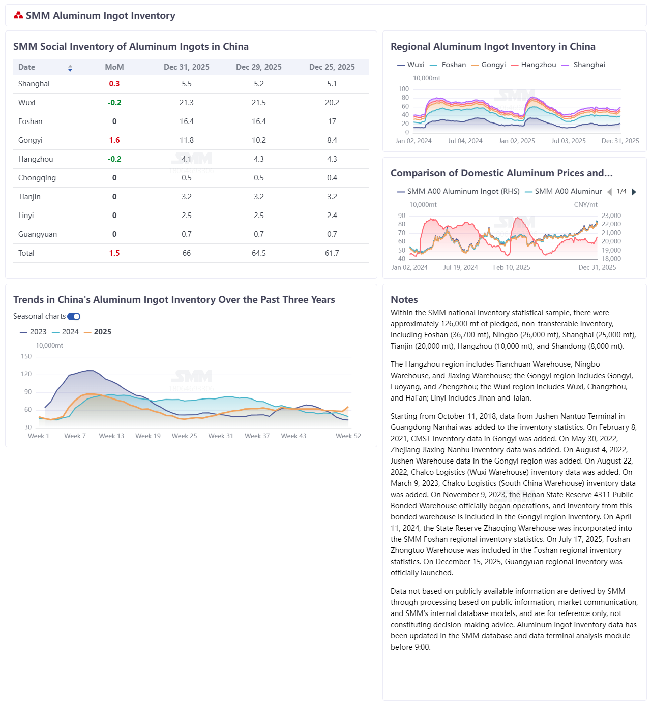 With the much-discussed issue of Xinjiang's shipping backlog coming to an end, domestic aluminum ingot inventories began to build up from mid-December, successively breaking through the 600,000 mt and 650,000 mt thresholds. By the end of December, inventory levels had increased by nearly 15% compared to the levels on December 18. Of course, the reasons for this sustained inventory buildup cannot be attributed solely to the recovery in shipping. Considering the core context of Xinjiang's shipping resumption, the current domestic aluminum ingot inventory buildup is primarily due to a combination of four factors: "increased supply arrivals + weak demand digestion + industrial structural adjustments + high aluminum prices suppressing consumption." SMM has summarized the four main reasons for the year-end shift in domestic aluminum ingot inventory trends for your reference:
