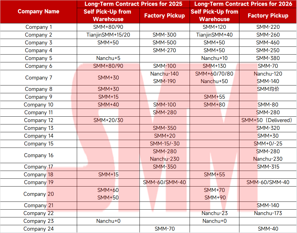 At the beginning of the new year, long-term contracts for 2026 have been mostly signed, and a new execution cycle has commenced. The market is paying close attention to the implementation of zinc smelters' long-term contracts this year. SMM has compiled and exchanged information on the long-term contract prices of some enterprises for 2026 as follows: