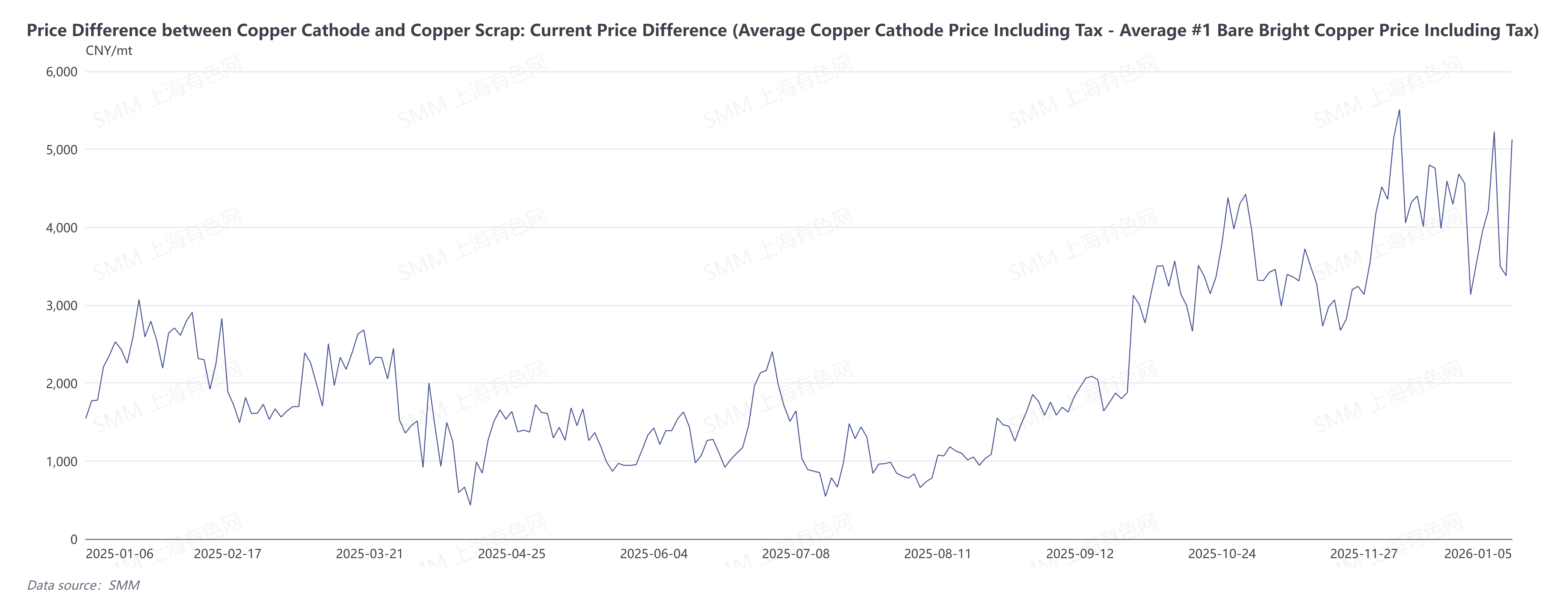 SMM expects the blister copper market to maintain a loose pattern in January 2026, with RCs fluctuating at highs. Demand side, after the year-end period and before the Chinese New Year holiday, smelter restocking demand will gradually release, and market demand expectations are set for a mild rebound. However, on the supply side, the wide price difference between primary metal and scrap will persist, secondary copper will continue flowing into smelting ports, and the supply of scrap-derived blister copper and copper anodes in the Chinese market will remain the core support for RCs.