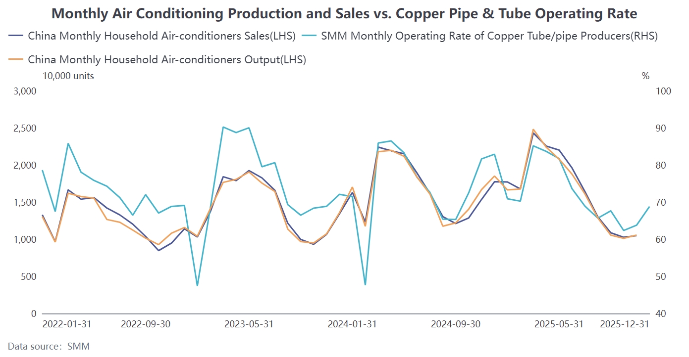 SMM expects the operating rate of copper pipe & tube enterprises to be 66.66% in January 2026, down 2.17 percentage points MoM and down 4.28 percentage points YoY.