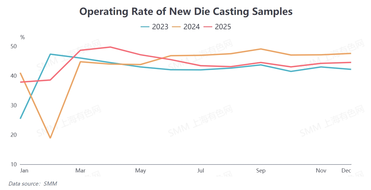 According to SMM data, the average annual operating rate of domestic die-casting zinc alloy in 2025 was 44.16%, up 0.48 percentage points YoY. The full-year operating rate showed a divergent trend of "rising sharply in H1 and pulling back in H2." The slight increase in the operating rate in 2025 was mainly driven by the export rush amid expectations of Sino-US tariffs in H1, coupled with the traditional peak season effect of "Golden March and Silver April," which led to a phased increase in industry operating rates. However, the decline in industry prosperity in H2 also introduced multiple variables for market development in 2026.