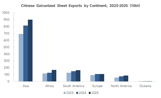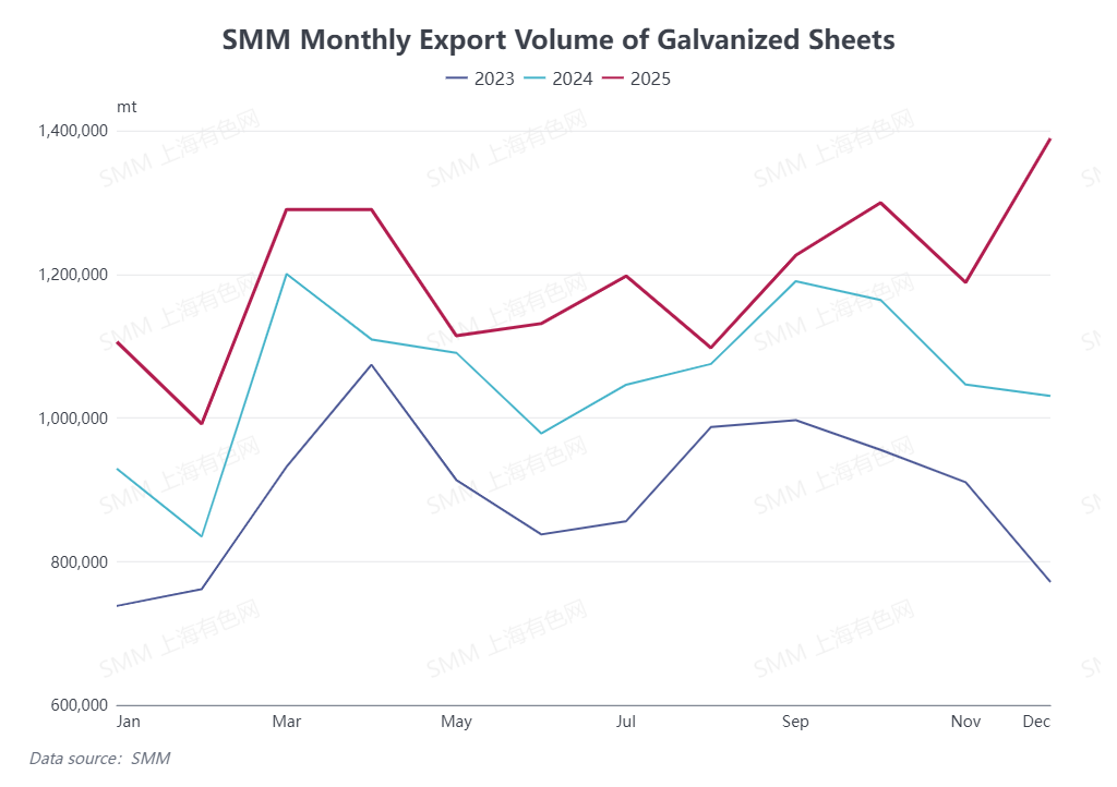 For the full year, Asia and Africa contributed the main increase in China's galvanized sheet exports, with Southeast Asia being the primary source of growth in Asia. According to SMM, Southeast Asian countries are major export destinations for Chinese galvanized sheets, with strong demand growth in the region. Additionally, ongoing development in Belt and Road Initiative partner countries has driven related demand, collectively supporting the continued rise in China's galvanized sheet exports in 2025.