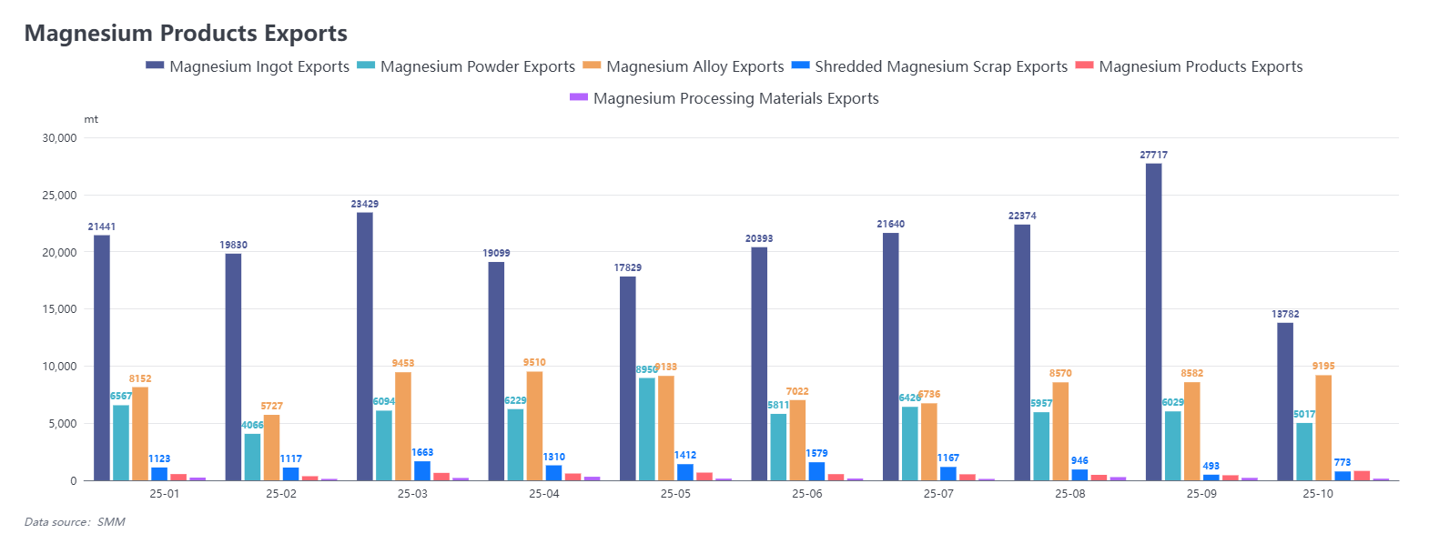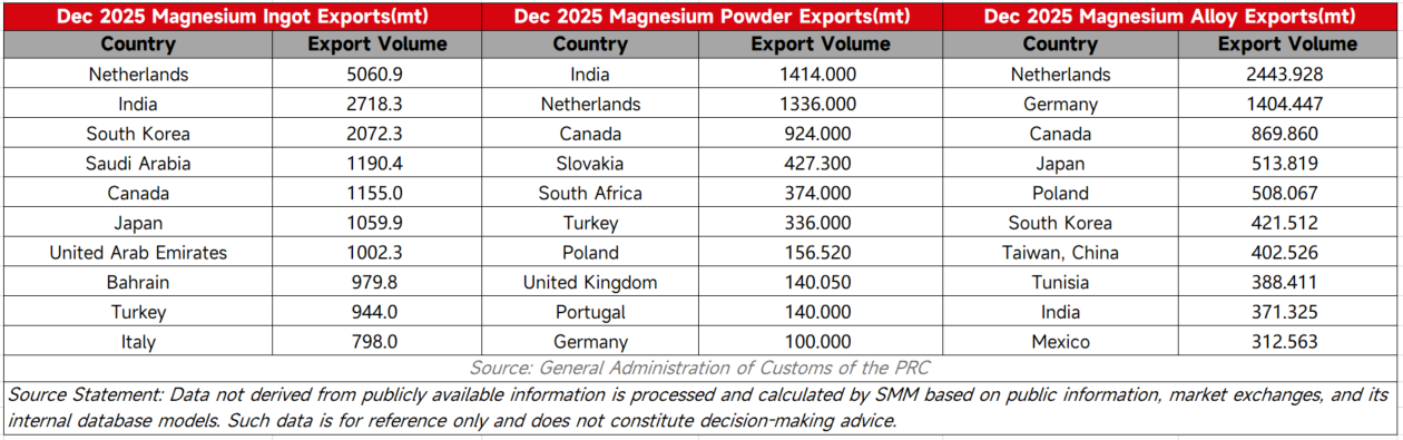 Overall, magnesium ingot exports in 2025 were still dominated by actual end-use demand, with no sustained stockpiling-driven growth.