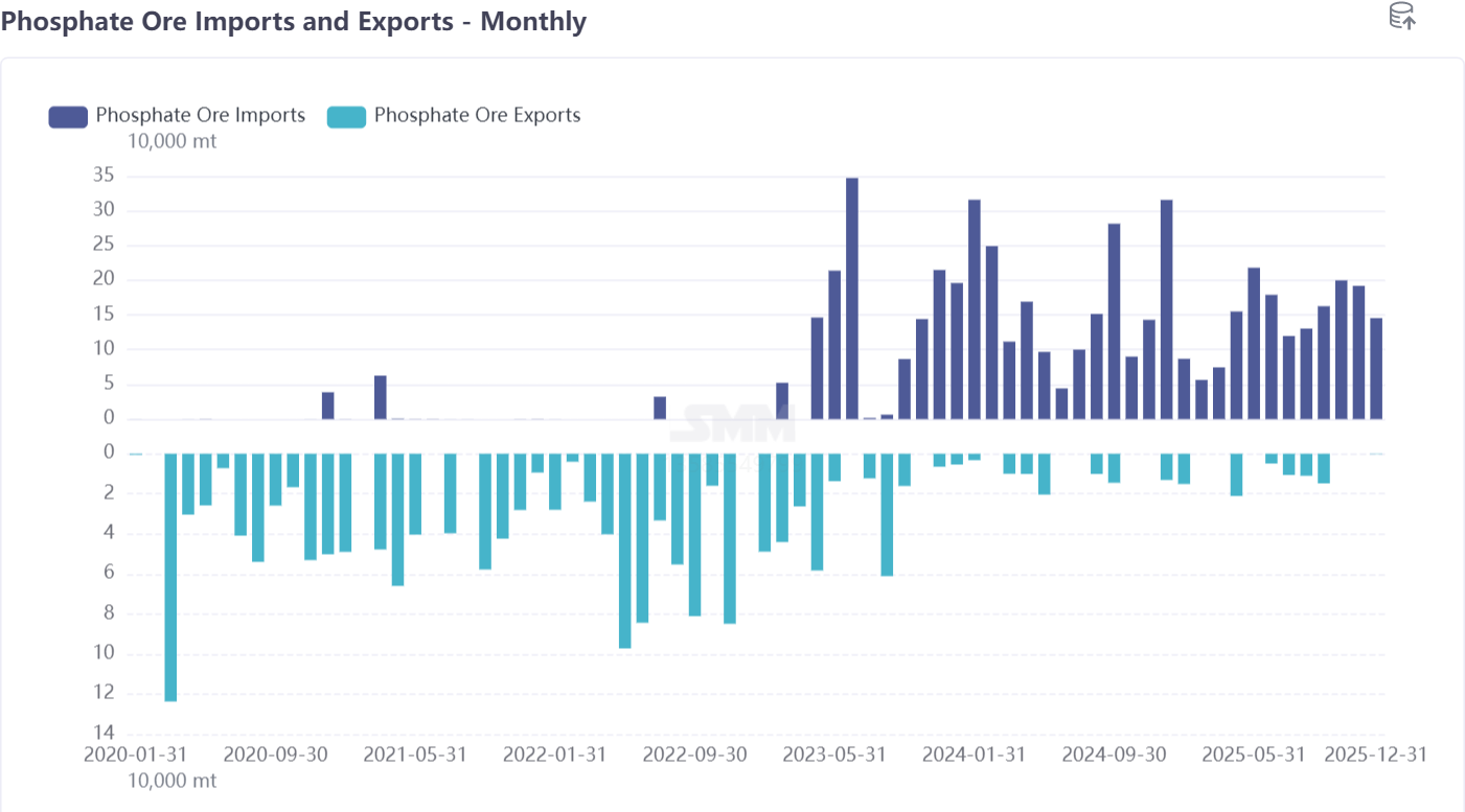 Home / Metal News / China's Phosphate Ore Imports Fell in Volume but Rose in Price in December 2025, with Total Imports Down 24.2% MoM and Average Price Up 13.5%