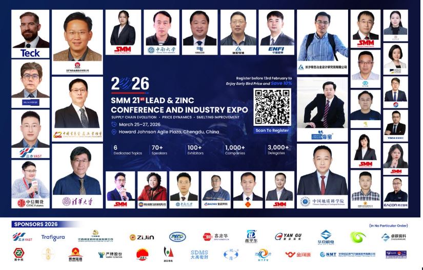 Chengdu, China [March 25–27, 2026] — 2026 SMM (21st) Lead & Zinc Conference and Industry EXPO (SMMPbZn), the foremost gathering for the lead and zinc industry, is set to take place from March 25 to 27, 2026, at the Howard Johnson Agile Plaza in Chengdu, China.