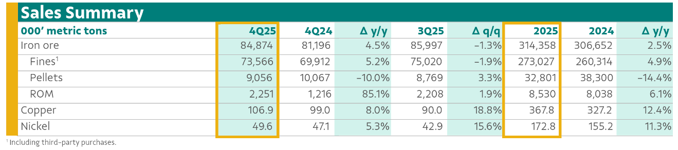 Although pellet production retreated by 9% year-on-year to 8.3 Mt due to volatile market conditions, the overall alignment between iron ore production and sales remained healthy. Quarterly sales volumes reached 84.9 Mt, up 5% year-on-year, broadly matching the increase in production.