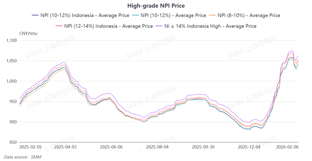 [SMM Nickel Flash] This week, due to a sharp decline in futures triggering arbitrage selling, high-grade NPI prices fell significantly. However, after the selling activity subsided, upstream quotations and the market center gradually returned to normal levels, supported by cost factors. Looking ahead, as the Chinese New Year holiday approaches, market activity is expected to remain subdued, and high-grade NPI prices are projected to hover at highs with limited fluctuations.