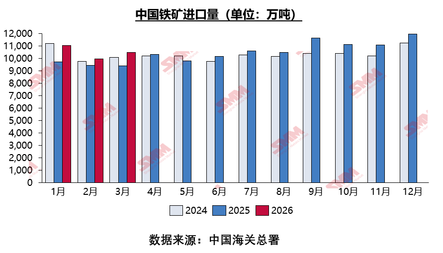 De cara a abril, aunque el impacto directo de la situación en Oriente Medio sobre las importaciones totales de mineral de hierro de China es relativamente limitado, si el conflicto en Oriente Medio no logra una desescalada sustancial durante el mes, es probable que algunos graneleros internacionales continúen evitando los puertos de Oriente Medio para el transbordo, lo que resultaría en que China reciba pasivamente más cargamentos de otras regiones en cierta medida. Asimismo, a medida que los proyectos mineros a gran escala fuera de China avanzan progresivamente, la oferta global de mineral se mantiene generalmente amplia, y los envíos liderados por Simandou (estimados en 20 millones de toneladas para el año completo) se espera que aporten un cierto impulso a la oferta de mineral de hierro exportado a China en abril. Desde una perspectiva estacional, el segundo trimestre es tradicionalmente la temporada alta de envíos de mineral de hierro. Por lo tanto, teniendo en cuenta todos los factores mencionados, se espera que las importaciones de mineral de hierro de China en abril muestren una cierta tendencia de crecimiento.