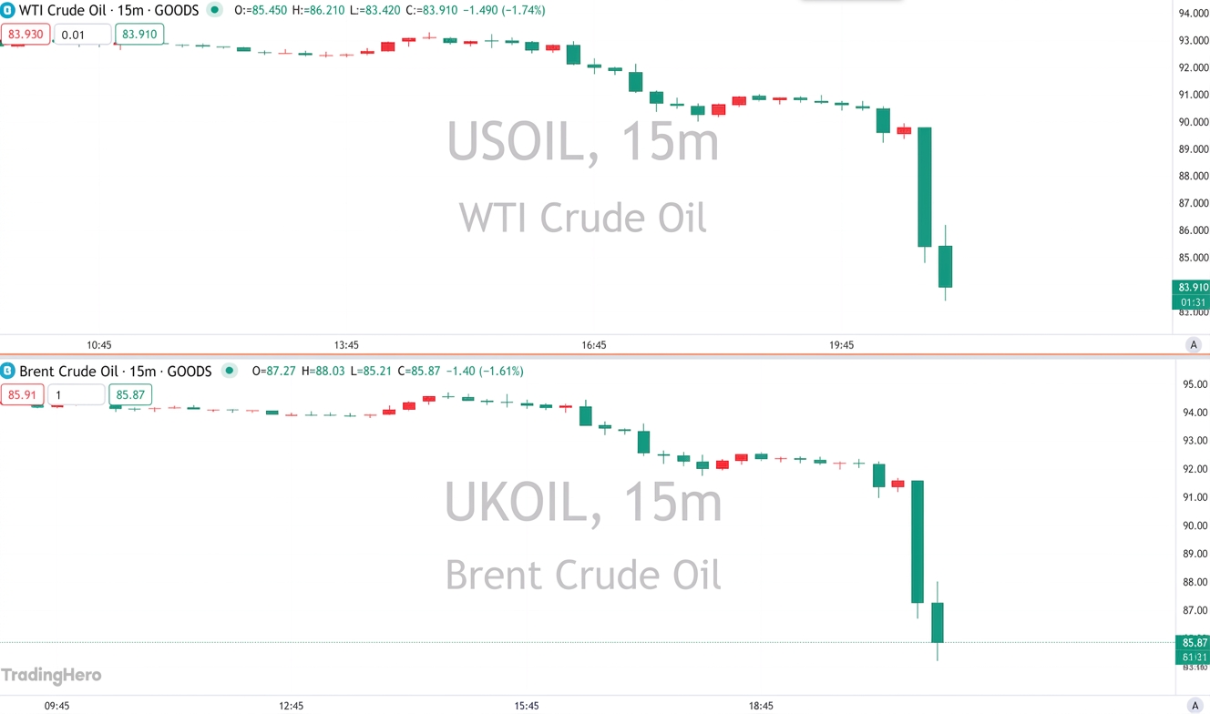 Con esta noticia, el crudo estadounidense cayó más de un 9% en el día hasta alrededor de 84 dólares; el crudo Brent rompió por debajo del nivel de 90, cayendo más de un 8% en la jornada y borrando todas las ganancias de la semana; los precios de referencia del gas natural europeo también registraron una fuerte caída.