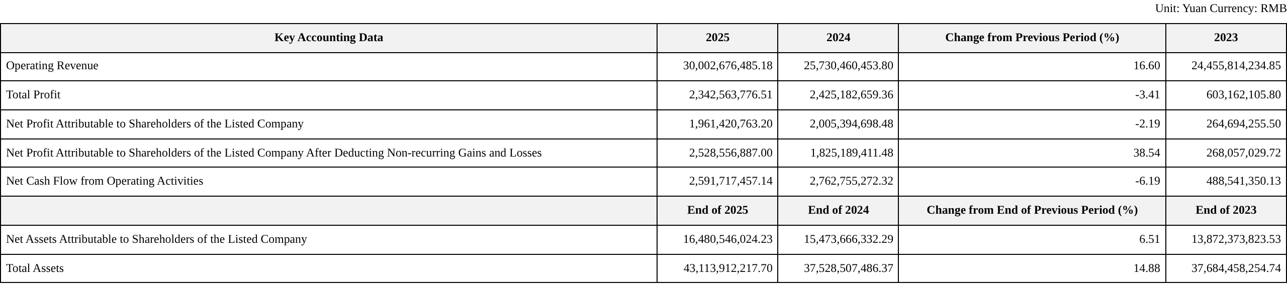 Chengtun Mining's previously released 2025 annual report showed that in 2025, the global non-ferrous metals industry entered a new development stage of supply-demand restructuring and value reassessment. Energy metals such as copper, cobalt and nickel were boosted by rigid demand from new energy, AI computing power, global power grid upgrades and other sectors, coupled with rigid supply-side constraints, driving the price center continuously upward. Precious metals such as gold saw a value opportunity amid global geopolitical conflicts and rising safe-haven demand. The new energy battery industry achieved high-quality advancement amid structural opportunities. Facing new industry development opportunities, the company adhered to its resource-oriented and internationalization strategy, deepened its entire industry chain layout of "controlling upstream resources and expanding downstream materials," strengthened operational measures of "controlling costs, focusing on details, and enhancing quality and efficiency," continuously consolidated core capabilities in global resource exploration, construction and operations, and enhanced the industry chain extension value of smelting, processing and materials manufacturing, continuously strengthening operational quality and resilience against cyclical fluctuations amid industry value restructuring. In 2025, the company achieved new breakthroughs in global resource deployment and industry chain operational capabilities. Overseas core projects achieved remarkable results in quality and efficiency improvement. After the completion of the Phase II expansion of the BMS copper smelting project, capacity increased significantly, reaching 120,000 mt in metal content by year-end, with annual production of 106,300 mt in metal content, and the profitability resilience of the copper-cobalt business continued to strengthen. The Kalongwe integrated mining and smelting project in the DRC advanced full-process technological transformation and engineering construction, achieving comprehensive upgrades in product quality control, production energy consumption reduction, comprehensive utilization of resources, and refined cost management. Indonesia's Youshan Nickel maintained stable operations amid industry fluctuations. The domestic segment made progress on multiple fronts: the Guizhou project further released industry chain extension value, Huajin Mining achieved steady growth in gold production, and the Dali Sanxin copper mine construction progressed in an orderly manner. In 2025, the company achieved operating revenue of 30.003 billion yuan, up 16.60% YoY; net profit attributable to shareholders of the publicly listed firm was 1.961 billion yuan, down 2.19% YoY.