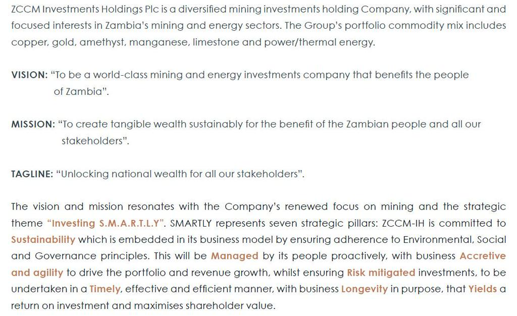 The ZCCM-IH 2020-2026 Strategic Plan provides the thrust for ZCCM-IH to achieve its full potential in extracting the most value and the highest returns from our assets for the benefit of our shareholders.