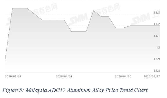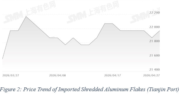 On the scrap side, imported shredded aluminum prices edged lower. Ningbo port prices declined from RMB 21,920/mt to RMB 21,820/mt, while Tianjin port prices dropped from RMB 21,970/mt to RMB 21,870/mt, representing a decrease of around RMB 100/mt. Despite the marginal weakening, prices remain at relatively high levels, continuing to provide effective cost support for ADC12.