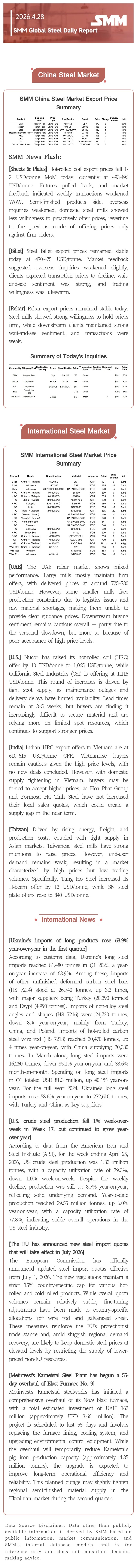 SMM News Flash: [EUA] A Nucor elevou sua oferta de bobinas laminadas a quente (HRC) em 10 USD/tonelada para 1.065 USD/tonelada, enquanto a California Steel Industries (CSI) está ofertando a 1.115 USD/tonelada. Esta rodada de aumentos é impulsionada pela oferta spot restrita, já que paradas de manutenção e atrasos nas entregas limitaram a disponibilidade. Os prazos de entrega permanecem em 3–5 semanas, mas os compradores encontram cada vez mais dificuldade em garantir material e dependem mais de recursos spot limitados, o que continua sustentando preços mais firmes.