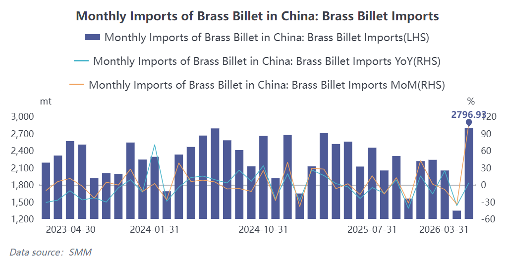 China's Brass Billet Imports Up Both YoY and MoM in March!