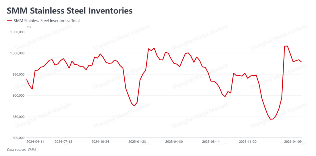 Theo Shanghai Metals Market (SMM), tồn kho xã hội (thép không gỉ lưu kho ngoài nhà máy) giảm xuống 978.000 tấn trong tuần này, giảm 0,55% so với tuần trước và rút khỏi ngưỡng tâm lý quan trọng một triệu tấn. Sự giảm tồn kho chủ yếu do việc giải phóng các đơn hàng tích lũy trong kỳ nghỉ lễ Thanh Minh và sự gia tăng hoạt động hỏi mua trong những ngày ngay sau kỳ nghỉ.