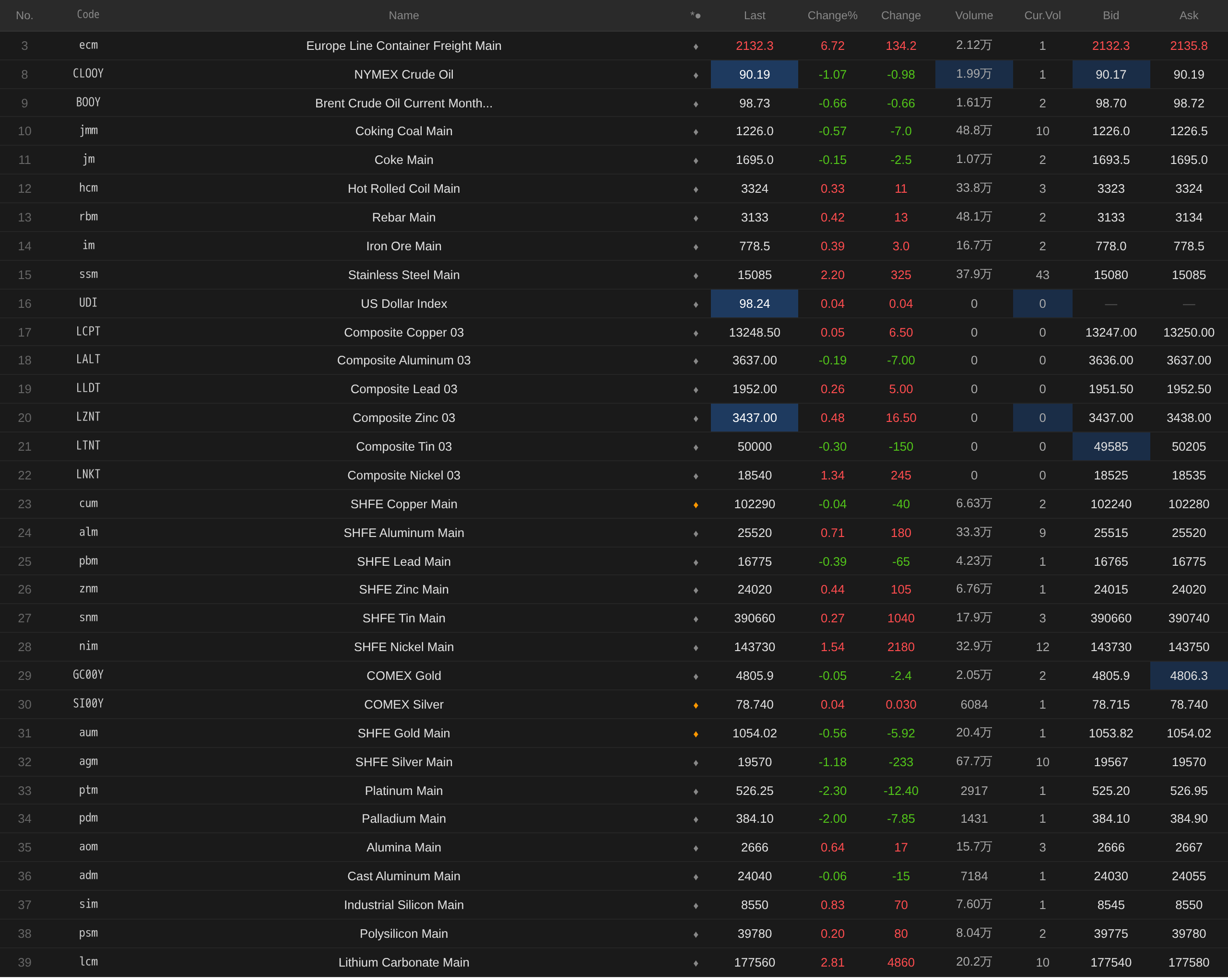 Ngoài ra, hợp đồng carbonat lithium tháng gần nhất tăng 2,81%, hợp đồng polysilicon tháng gần nhất tăng 0,2%, và hợp đồng silicon kim loại tháng gần nhất tăng 0,83%. Hợp đồng cước vận tải container châu Âu tháng gần nhất tăng vọt 6,72% và đóng cửa ở mức 2.132,3.